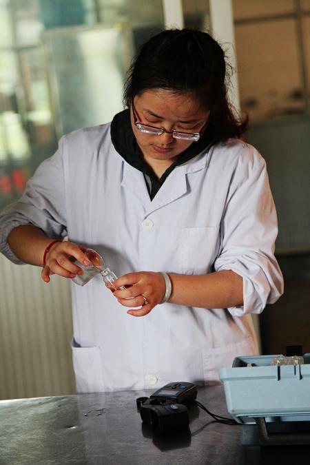 圖為供水公司水質(zhì)化驗(yàn)員對(duì)學(xué)校內(nèi)管網(wǎng)水進(jìn)行現(xiàn)場檢測化驗(yàn)