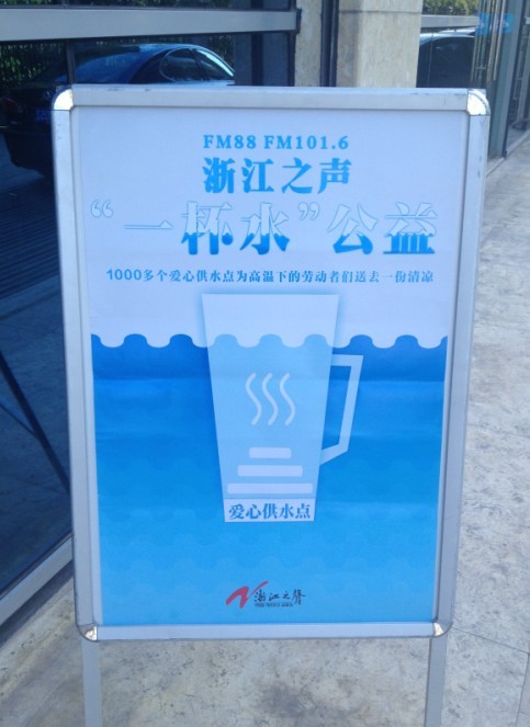 供水公司積極響應“浙江之聲——一杯水公益活動”,從8月6日起,在全縣各供水營業大廳設立“愛心飲水點”,