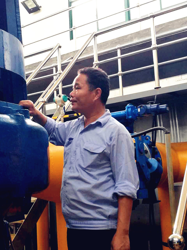 從 2001 年至今,張立平一直從事設備維修管理工作。剛參加工作時,張立平也曾對許多故障束手無策。對此,他一方面在網上查閱資料,另一方面虛心向廠家和同事請教,仔細拆卸每一個故障設備的部件,細致琢磨每個零件的功能原理,經過幾年的努力,逐漸成為了設備保障的行家里手。2013年,在設備廠家撤退、無現成備件、無直接可借鑒的技術的情況下,張立平組織維修力量,對新區離心機進行專題研究,并先后開展了離心機下水管優化改造、油泵改造、設置離心機沖洗管等創新舉措,不僅解決了原來離心機處理量小、含水率高的基本性難題,而且緩解了漏油故障和氣泡問題,確保了污泥處理系統的全運行。圍繞保障運行,張立平提出了“以養代修、以改促修”的維修理念,他帶領團隊先后完成了鼓風機循環水泵自動控制方案、排氣閥門優化改造方案等10 余項創新型改造方案,通過實施優化改造,使設備經常性故障得以逐步消除,為水處理系統的正常運行提供了有力保障。